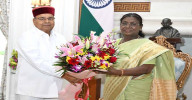 Hon'ble Governor of Karnataka, Shri Thaawarchand Gehlot, paid a courtesy call on Hon'ble President of India Smt. Droupadi murmu at Rastrapathi Bhavan in NewDelhi.