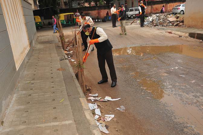 As part of cleanliness drive HAL employees and senior executives led by Mr. T. Suvarna Raju, CMD, undertook cleaning of market area and the street adjacent to the Corporate Office, Bangalore. “All our complexes, divisions and offices across the country are involved in spreading this important message of cleanliness and hygiene as we launch this campaign for 15 days,” he added.