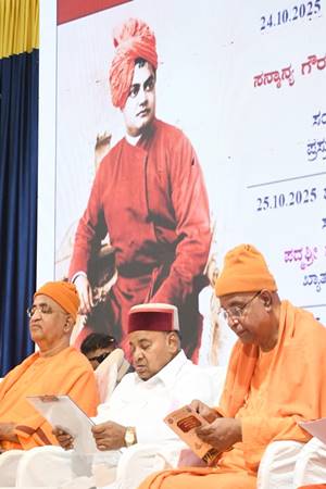 He further praised the Ramakrishna-Vivekananda Bhavaprachar Parishad*, stating, "For over a decade, the Parishad has been propagating the life, thoughts, and ideals of Sri Ramakrishna Paramahamsa, Mother Sri Sharada Devi, and Swami Vivekananda across Karnataka. It is more than an organization; it is a movement fostering consciousness, awareness, and societal transformation—from darkness to light, ignorance to knowledge, hatred to love. Its contributions in education, health, rural service, and disaster relief are commendable. I congratulate every member for their dedication and service."