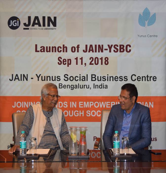 A Memorandum of Understanding (MoU) was signed between Jain (Deemed-to-be University) and YSBC to formulate Jain University – Yunus Social Business Centre (JU-YSBC). It will be a part of Jain University Incubation Centre (JUincubator).
